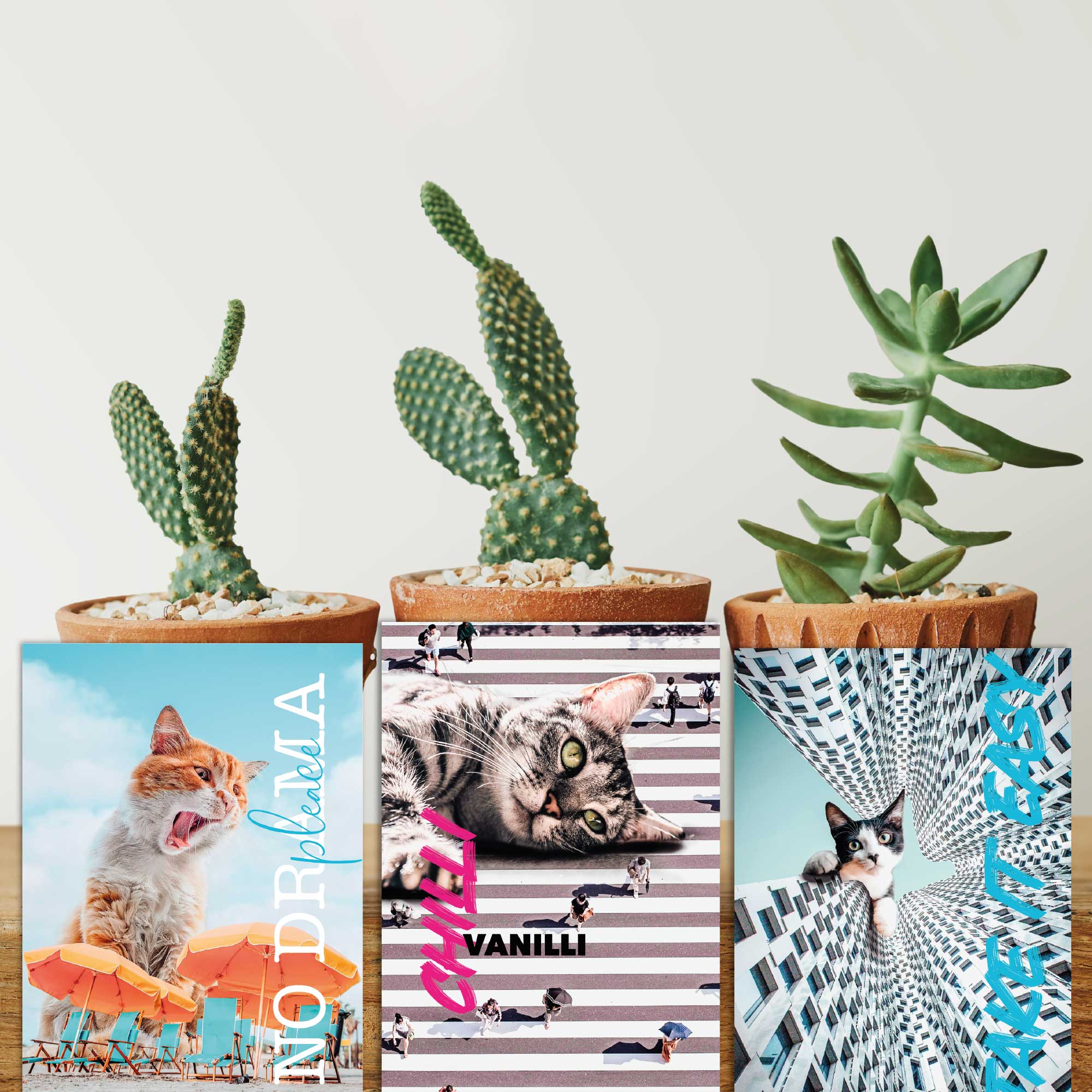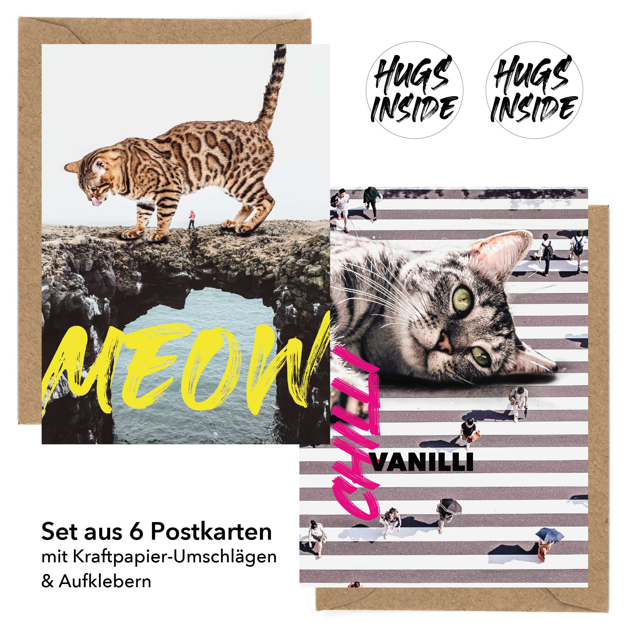 🐾 Liebevoll gestaltet: Set aus 6 modernen Postkarten mit einzigartigen Katzenmotiven – handgezeichnet, detailverliebt und ohne KI entworfen.